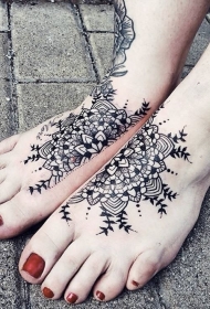 脚背有趣的黑白相间花朵纹身图案