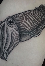 黑白点刺写实的鱿鱼纹身图案