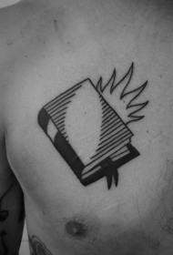 胸部old school黑白色封闭的书纹身图案