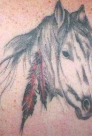 肩部有羽毛的白马纹身图案