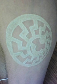 腿部带圆形标志的白色墨水纹身