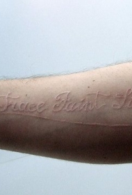 手臂白色墨水英文字母纹身图片