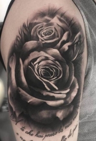 大臂逼真的黑白玫瑰纹身图案
