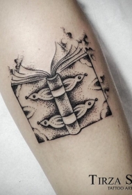 黑白点刺个性打开的书纹身图案