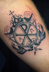 小臂令人难以置信的黑白基督教符号纹身图案