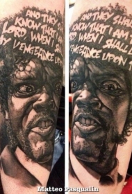 写实黑白著名演员肖像与字母纹身图案