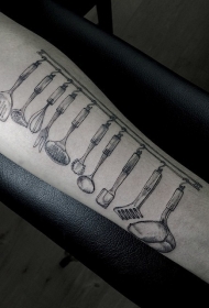 手臂黑灰专业厨具创意纹身图案