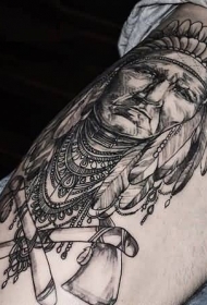 old school黑灰不同的印度人像纹身图案