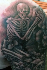 大臂令人印象深刻的黑灰祈祷骷髅纹身图案