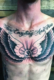 胸部黑白猫头鹰头与剑和翅膀纹身图案