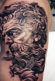 大臂有趣的黑灰自由女神像与麦克风纹身图案