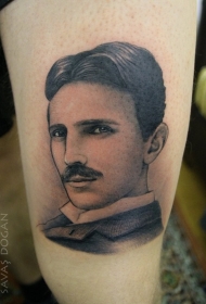 大腿令人难以置信的黑灰写实年轻男子肖像纹身图案