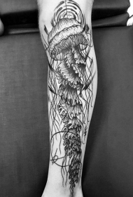 大腿令人惊叹的黑白美杜莎和蛇纹身图案