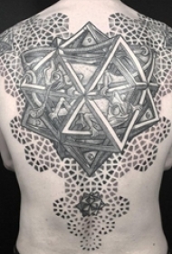男生背部黑灰素描点刺技巧几何元素大面积霸气纹身图片