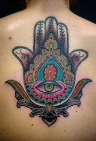 女生背部彩绘水彩素描文艺经典吉祥法蒂玛之手纹身图片