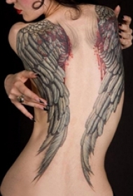 女生背部黑灰素描点刺技巧霸气大面积满背翅膀纹身图片