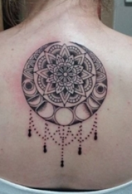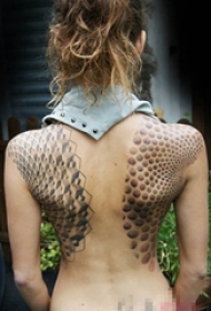女生背部黑色素描点刺技巧创意花纹对称纹身图片