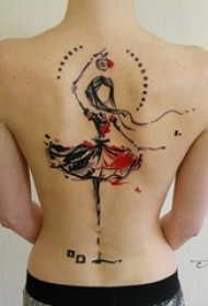 女生背部彩绘素描创意可爱跳舞女生人像纹身图片