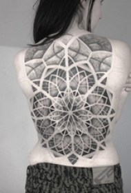 女生背部黑灰素描点刺技巧创意梵花花纹纹身图片
