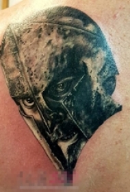 男生背部黑灰素描点刺技巧创意斯巴达纹身图片