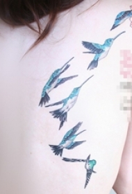 女生背部彩绘水彩创意小鸟纹身图片