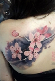女生背部彩绘水彩素描创意文艺唯美花朵纹身图片