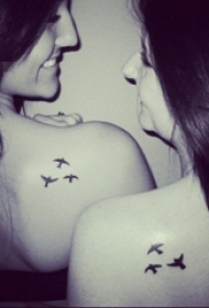 闺蜜背部黑色简约轮廓创意小鸟纹身图片