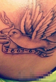 女生背部黑色素描点刺技巧小鸟纹身图片