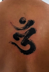 背部黑色亚洲的汉字和红色泼墨纹身图案