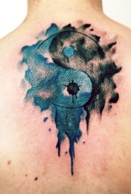 亚洲传统风格水彩阴阳八卦符号背部纹身图案