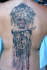 满背彩绘骷髅艺妓和仙鹤纹身图案