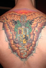 满背可怕的邪恶骷髅与眼睛纹身图案