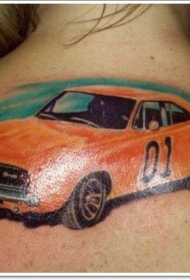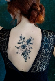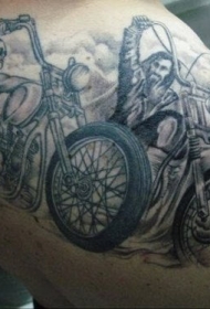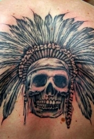 背部经典的灰色骷髅结合阿兹特克石像纹身图案