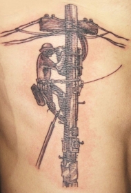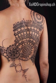 背部特别的黑色几何线条断开的死蛇纹身图案