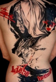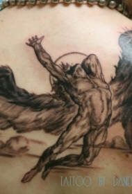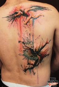 背部漂亮的彩色飞翔伊卡洛斯泼墨纹身图案