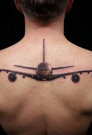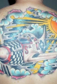 背部插画风格彩色二战战斗机卡通纹身纹身图案