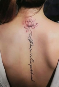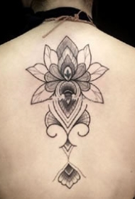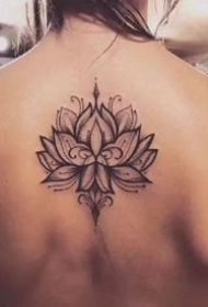 美背纹身:女生后背上唯美的黑灰点刺梵花纹身