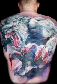 满背卡通风格彩色的各种恶魔和怪物纹身图案