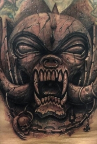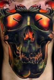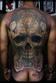 背部神秘期待的骷髅与几何烟雾纹身图案