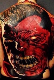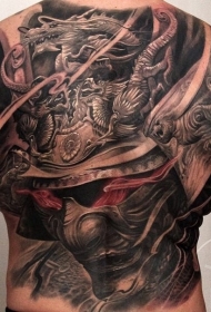 背部漂亮的彩色泼墨大马和字母纹身图案