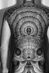 黑灰纹身 男生背部点刺纹身图片