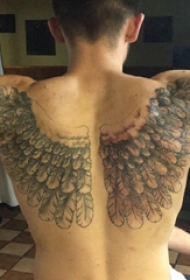 纹身背部翅膀 男生背部黑灰的翅膀纹身图片