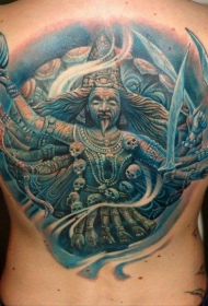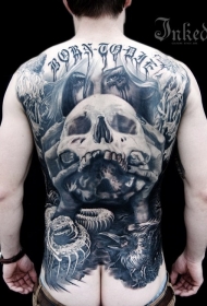 背部令人毛骨悚然的女人骷髅和字母纹身图案