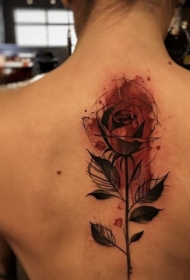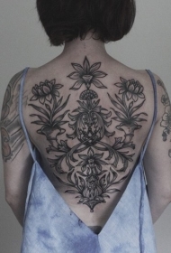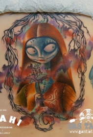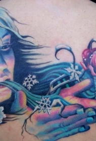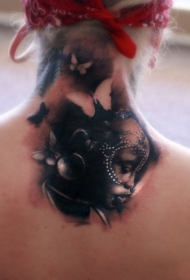背部彩色的部落妇女肖像和蝴蝶纹身图案