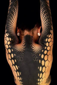 背部令人毛骨悚然的龙和蝙蝠纹身图案
