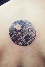 背部惊人的彩色凤凰鸟和花卉纹身图案