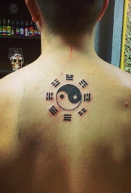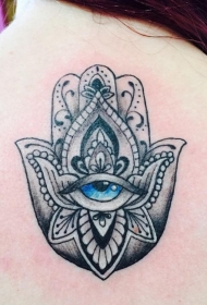 背部彩色法蒂玛之手与逼真的眼睛纹身图案