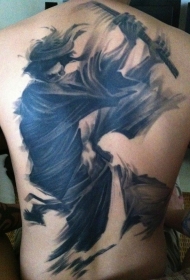 背部插画风格彩色的恶魔武士与老虎纹身图案