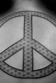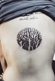 背部日本传统色的阴阳八卦和樱花树字符纹身图案