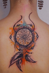 背部水彩画风格的法蒂玛之手符号纹身图案